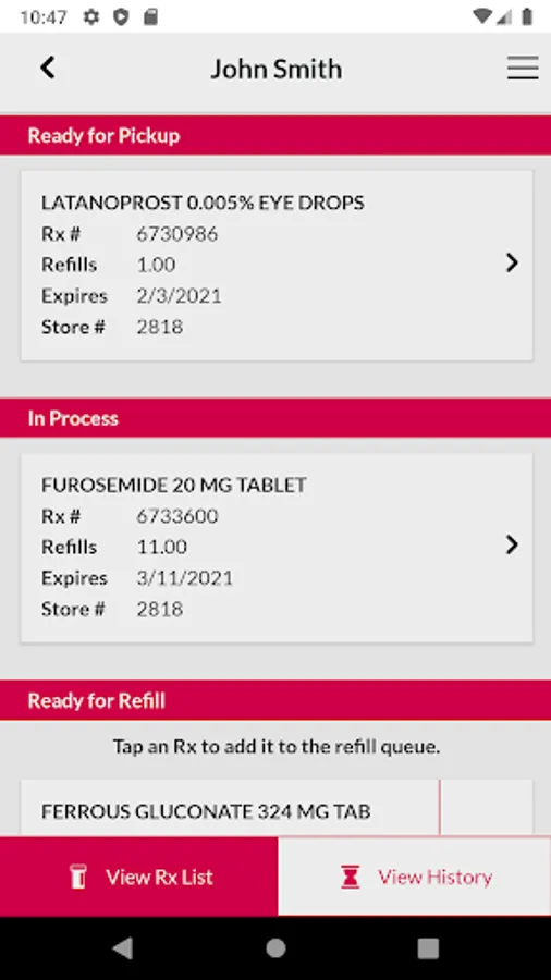 - Refill your prescriptions entering the Rx number or scanning the bottle