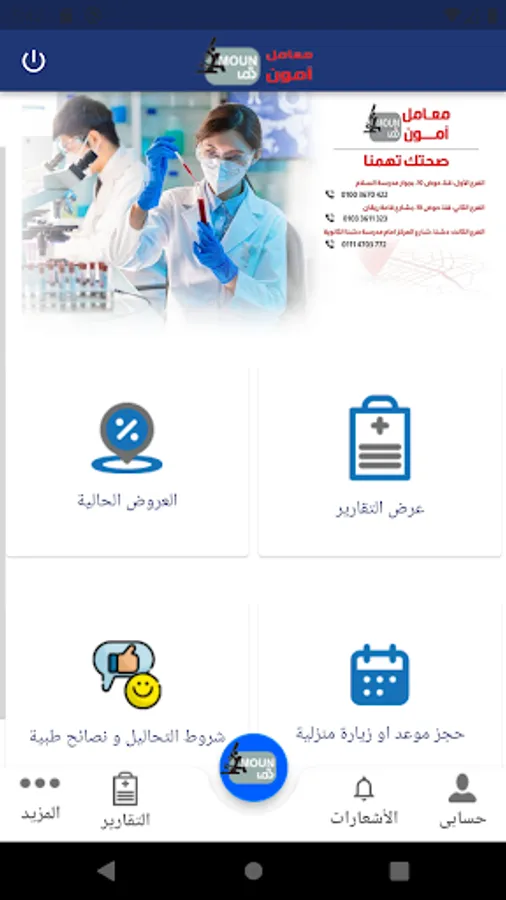 Amoun Laboratory for Patient and Contracts to get test result online easily and know some about our lab branches and offers