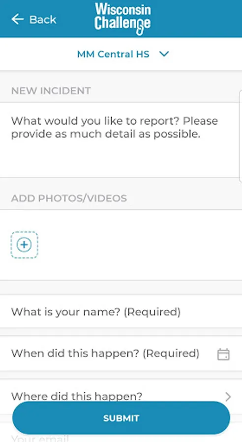 With the Wisconsin Challenge app, you can anonymously report incidents to your school or employer, which may include text and photos or video. Use it to anonymously alert your organization to inappropriate conduct or safety concerns such as harassment, bullying, ethics or compliance violations, weapons possession, hazing, safety hazards, threats, assault, or illegal activity, or to ask for help for yourself or another.