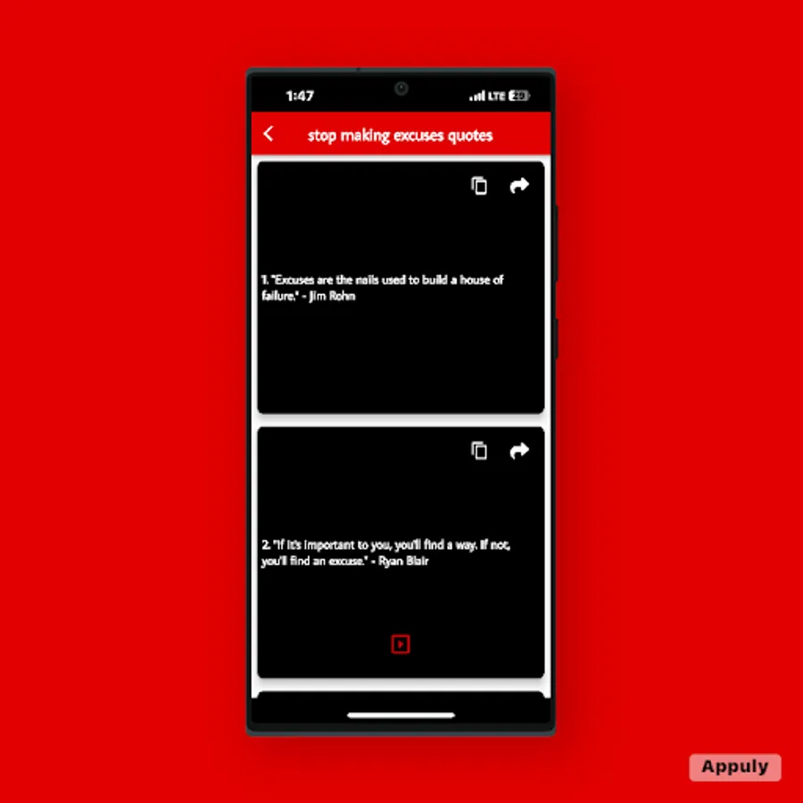 Stop Making Excuses is more than just an app; it's a mindset shift. Discover a collection of powerful quotes that will inspire and motivate you to let go of excuses and embrace a proactive approach to life. Immerse yourself in the wisdom of renowned thinkers, authors, and leaders who have recognized the transformative power of taking responsibility for one's actions.