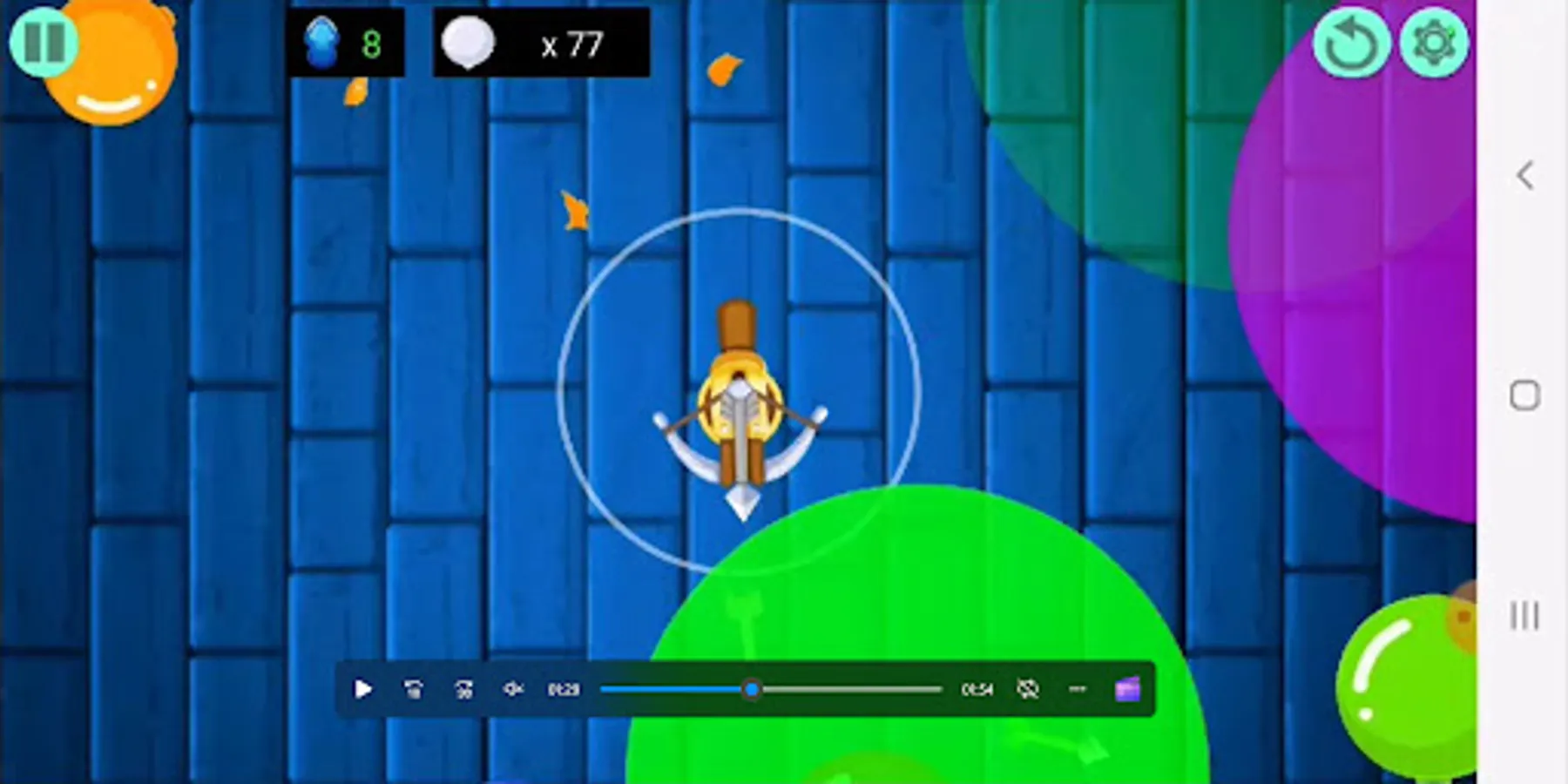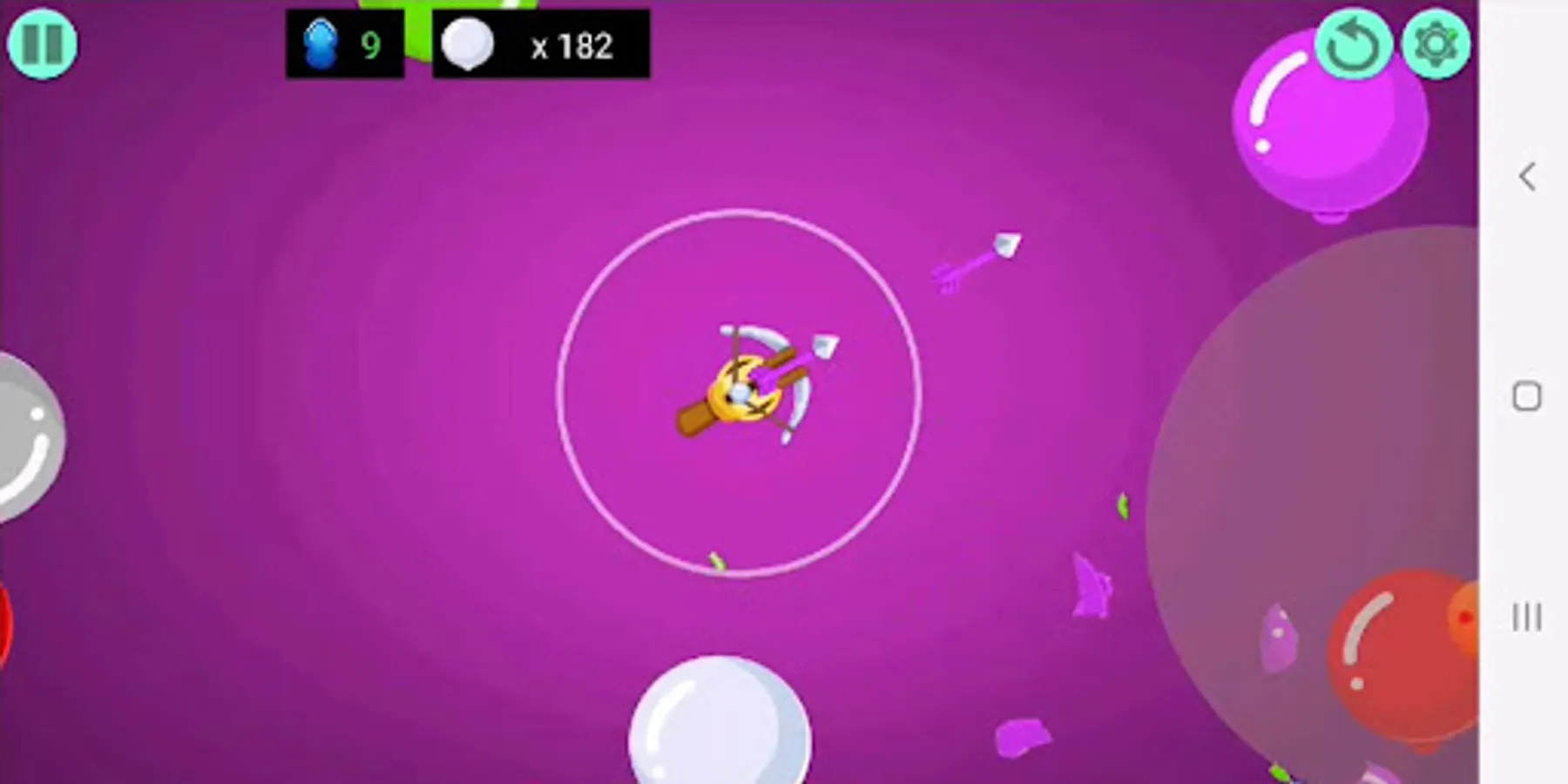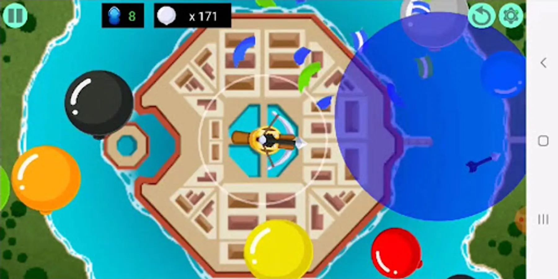 The goal is to not allow all the coming pied Balloons to get into the center of the screen, where the crossbow is shooting with arrows.
