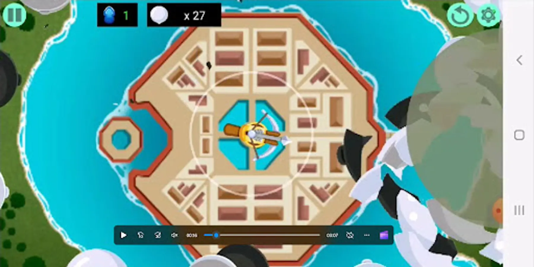 The arrows are fired one after the other from the center and their direction is where your finger is touching the screen at the moment of firing.