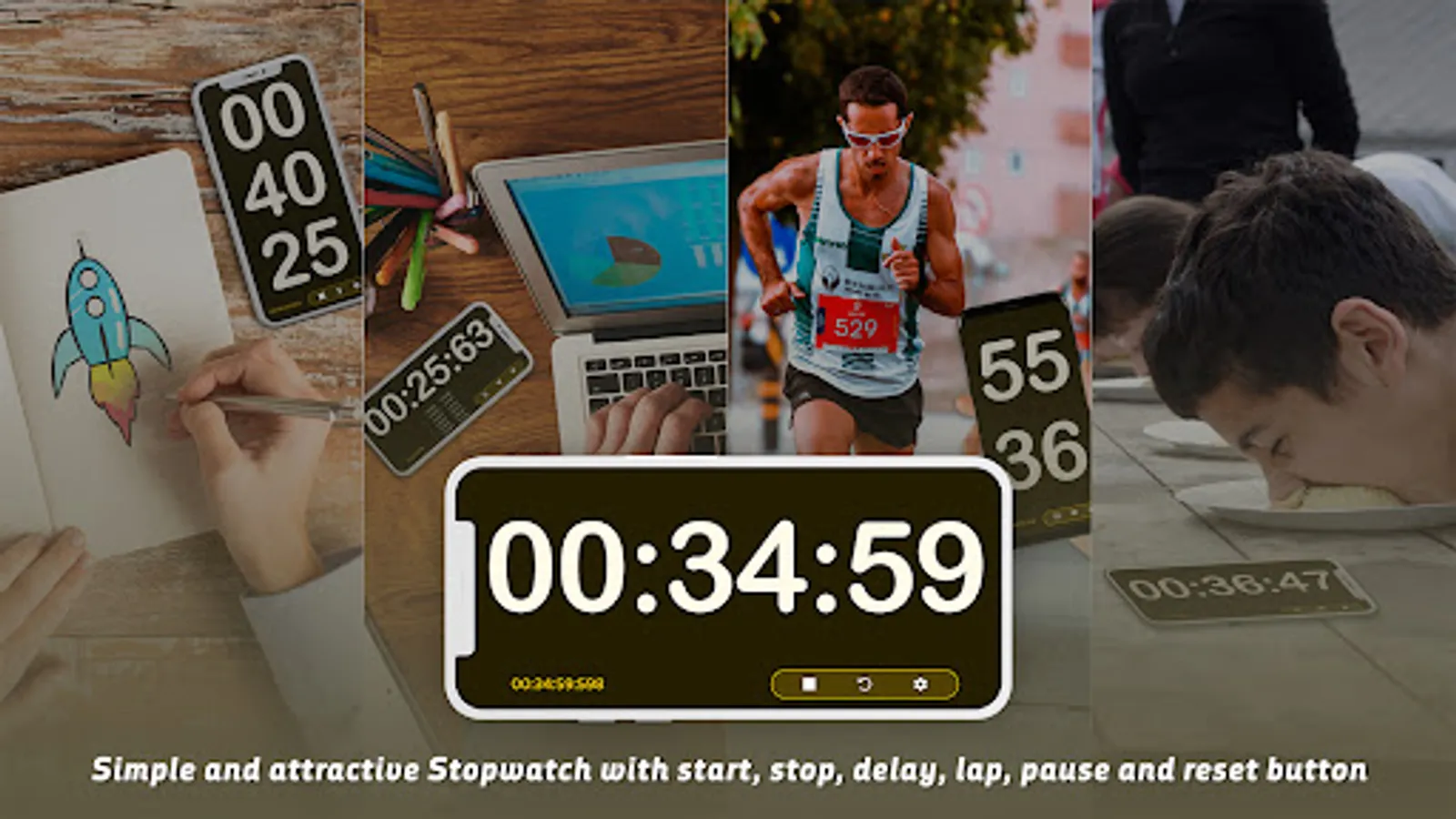 App gives a large font size stopwatch on screen. Giant Display Stopwatch app is very useful during exercise, cooking, games, lectures, debates, etc., and uses it anywhere.