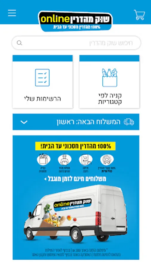 In the application of the 'Mehadrin Market' chain, you can purchase 100% of Mehadrin products, including fresh fruits, vegetables, meat and chicken, without hesitation or compromise, and receive the shopping with fast delivery to your home, even on the same day of the order!