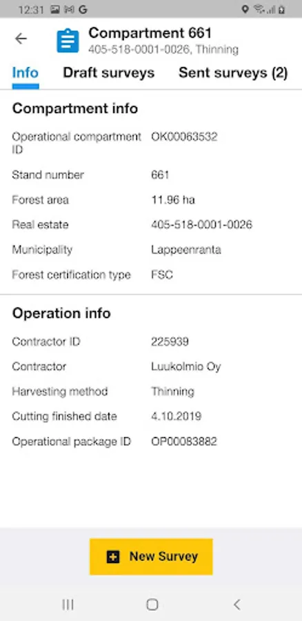 Biodiversity Monitoring is a survey application used in field work to collect post-harvest data on harvesting sites.
