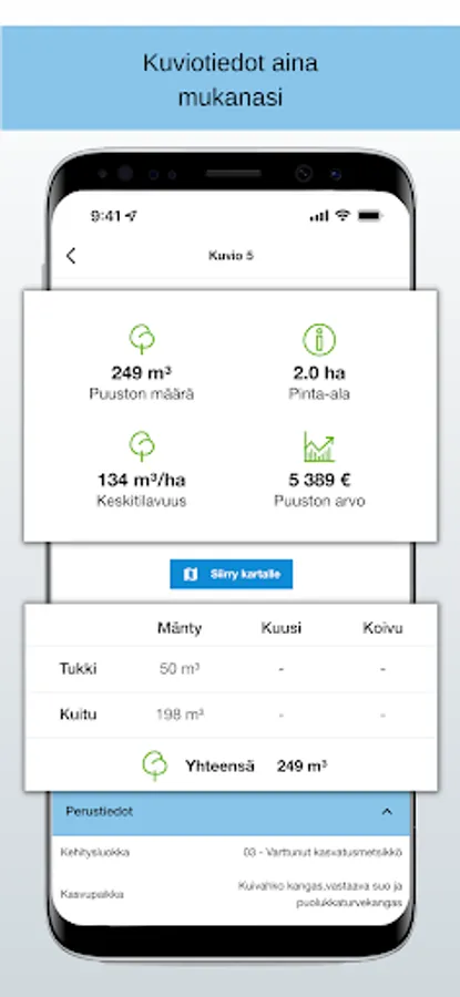 - Metsätilojesi information such as the amount of surface area and growing stock