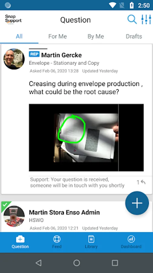 SnapSupport is a mobile customer support platform. With SnapSupport app, customers can ask questions with pictures or video in seconds. Take a picture of the issue, annotate the image and send to support team. Support team can respond to customer issues in seconds or minutes using a messaging interface.