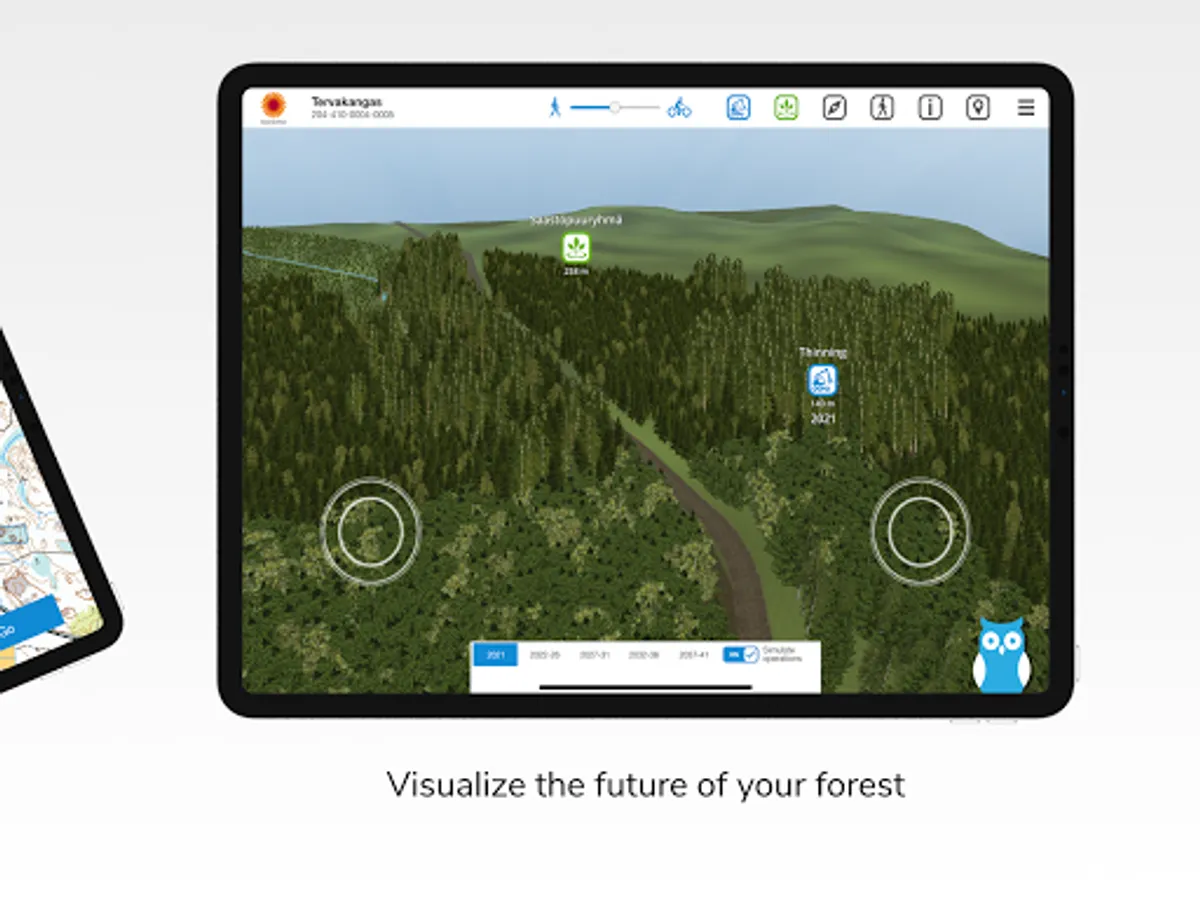 The application offers e.g. an illustrative view to the future of forest - five, ten, 15 or 20 years from now. The simulation feature is based on measures and proposals of the forest management recommendations. In the Virtual Forest, one can also see the logging revenues of the measures as well as the cost effects.