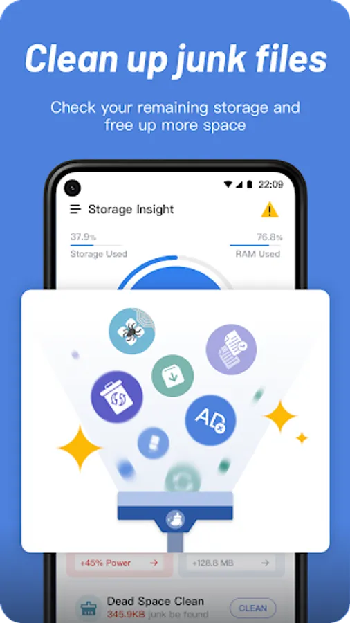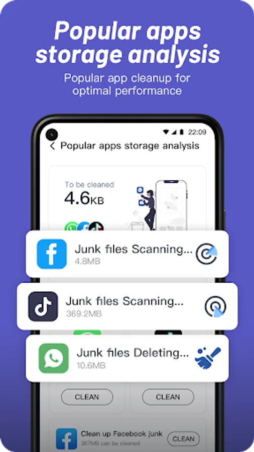 Analyze your phone to remove application cache, temp files, obsolete APKs, and residuals.