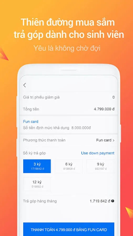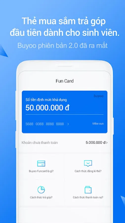6. Buy Card Fun Card officially launched. This is the first installment card for Vietnamese students with credit limit up to 10,000,000 VND, the lowest advance payment up to 0%. Please sign up now and use it.