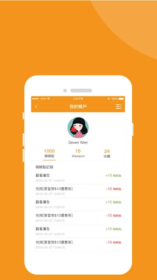 In the APP, you can earn points and redeem merchant coupons by watching videos