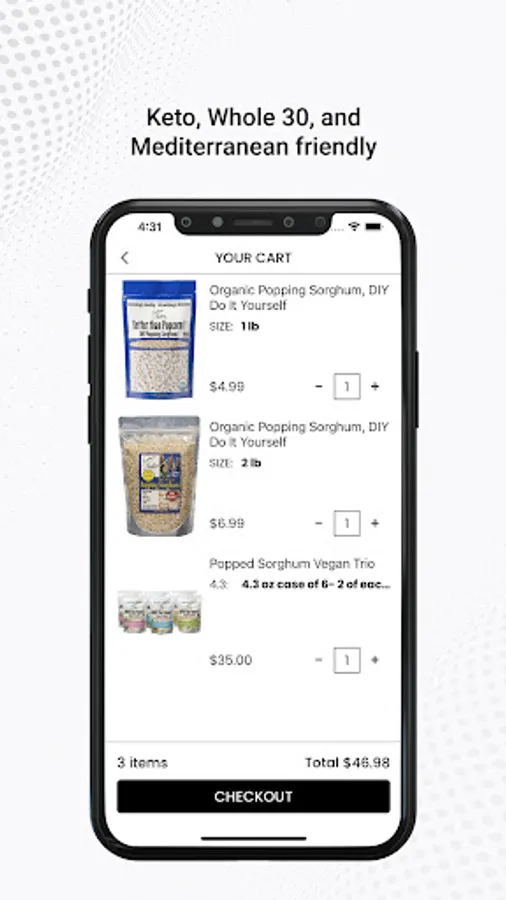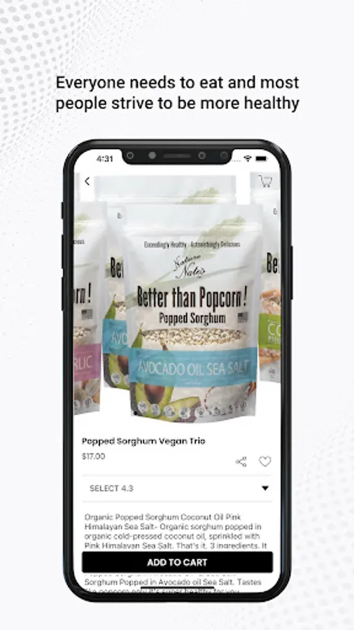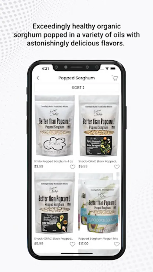 Popped Sorghum is just like popcorn only much healthier. It has a lot of Protein, it’s Gluten-free, is in the top 12 Non-allergen, Vegan, Non-GMO and the Sorghum is Organic. The Avocado Sea Salt product has ONLY 3 ingredients!