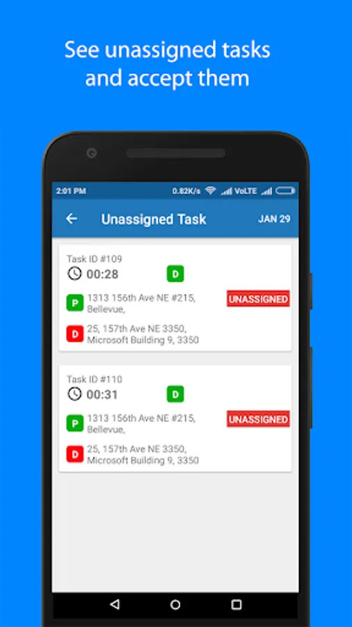 - See All Tasks that you have accepted, started, in transit or delivered