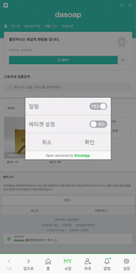 오로지 앱에서만 노출시킬 수 있는 팝업과 링크 연결로 접속 시 세일 이벤트, 명절 배송지연, 미확인 입금내역 공지 등등
