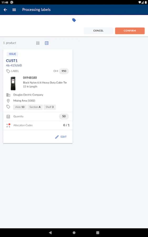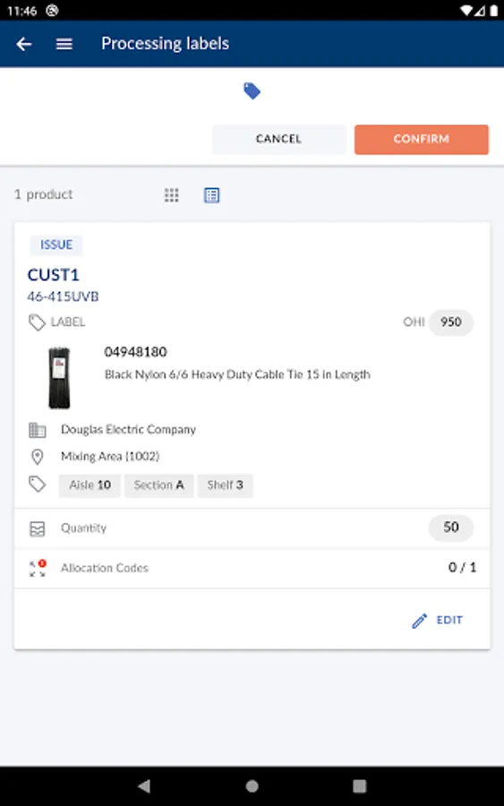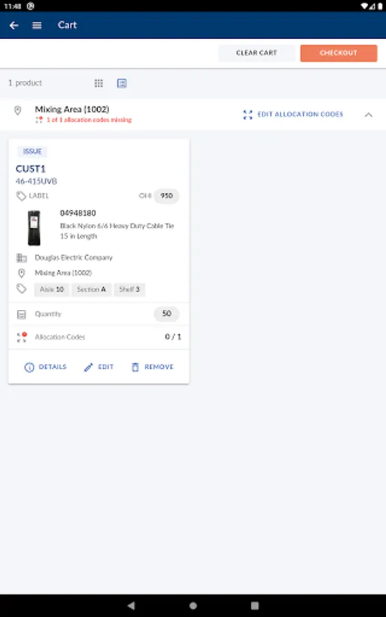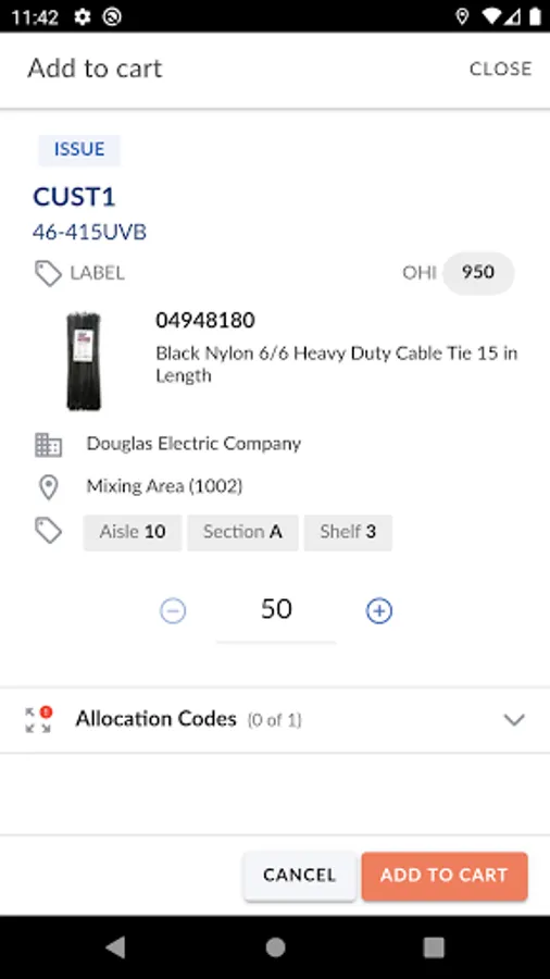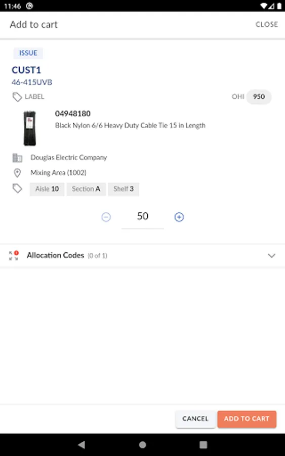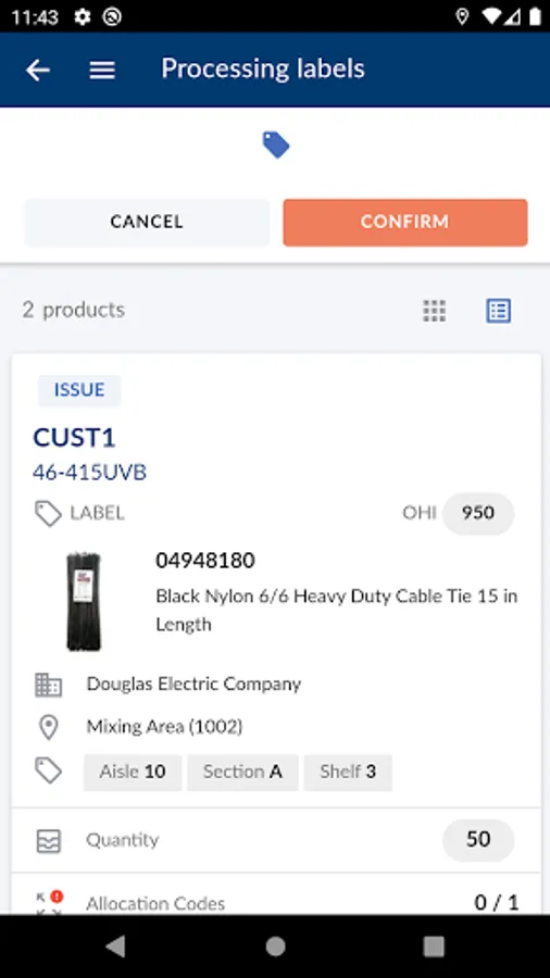 * Issue and Return products to any user defined allocation code like work order, job name, machine name or cost code.