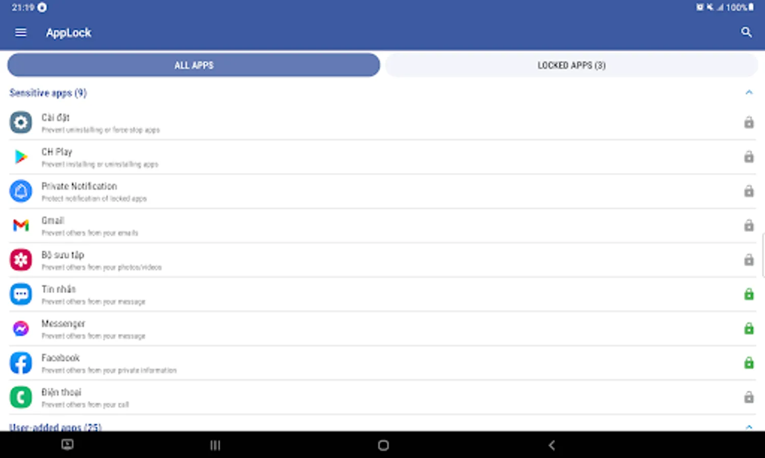 ✔ Separated lock application tab: Locked Apps and All Apps are in separated tab, let you easily to find & lock for apps you want.