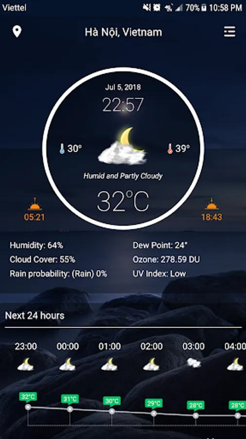 This free app accurately forecasts local weather: sunshine, rain, temperature, humidity, UV index, etc. for each minute and each specific location.