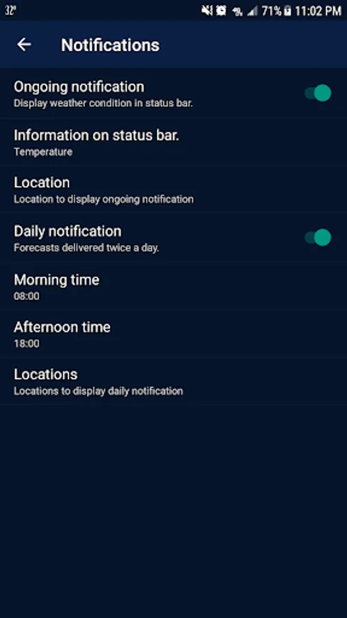 - Weather notifications. Show you warnings and alerts updates, if you don't like you can make it invisible