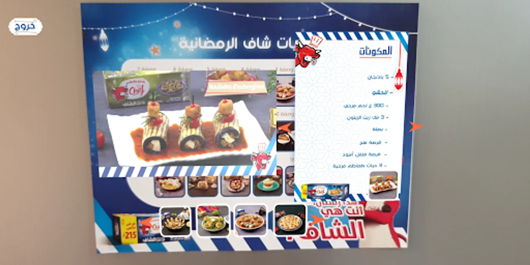 - videos of recipes in augmented reality illustrating the preparation of each dish with the necessary ingredients,