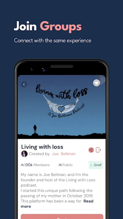 When we come together with an open heart, regardless of our differences, amazing things can happen: Friendships form, trust builds, compassion grows, wisdom is shared and true understanding blossoms. So, take the leap today - reach out for free peer support and share your own personal story. Let go of fear and begin healing!