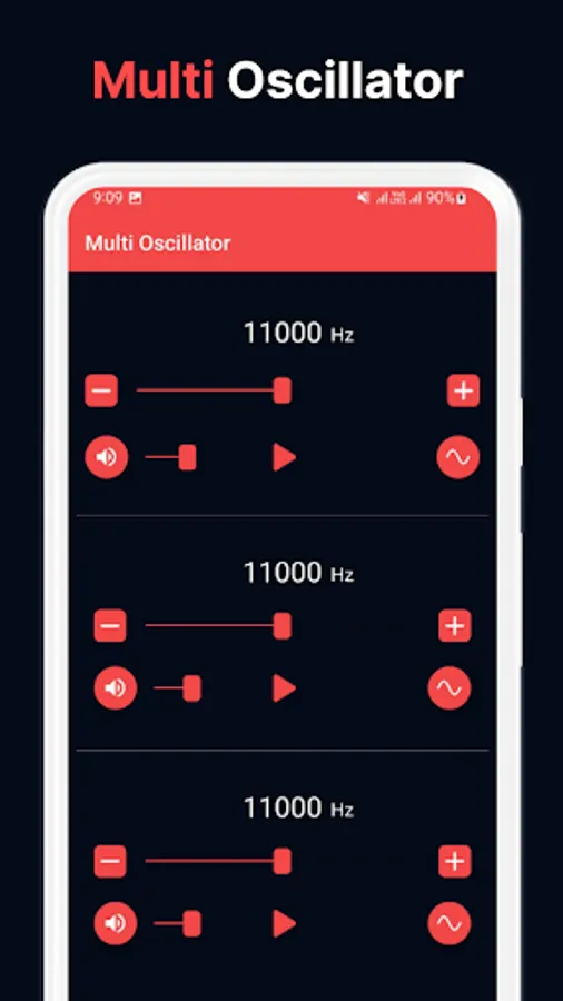 You can adjust the sound generating frequency easily by dragging the yellow dot clockwise or anticlockwise. Additionally, control the volume of the generated sounds from 0-100%.
