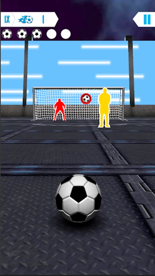 Experience yourself in the kicking shoes of the greatest number 10s of the Football World. Practice Trick shots, shoot the ball avoiding defenders and past the goalkeeper in practice mode. Test your skills in Arcade mode and cycle through different soccer arenas, stadiums, sand beach, street ball arena and even outer space. If you are skilled enough you can Battle the Time itself in Rush mode, score as many goals as possible in limited time and compete on Global Leaderboard. Enhance your experience with huge variety of Ball and Defender designs.
