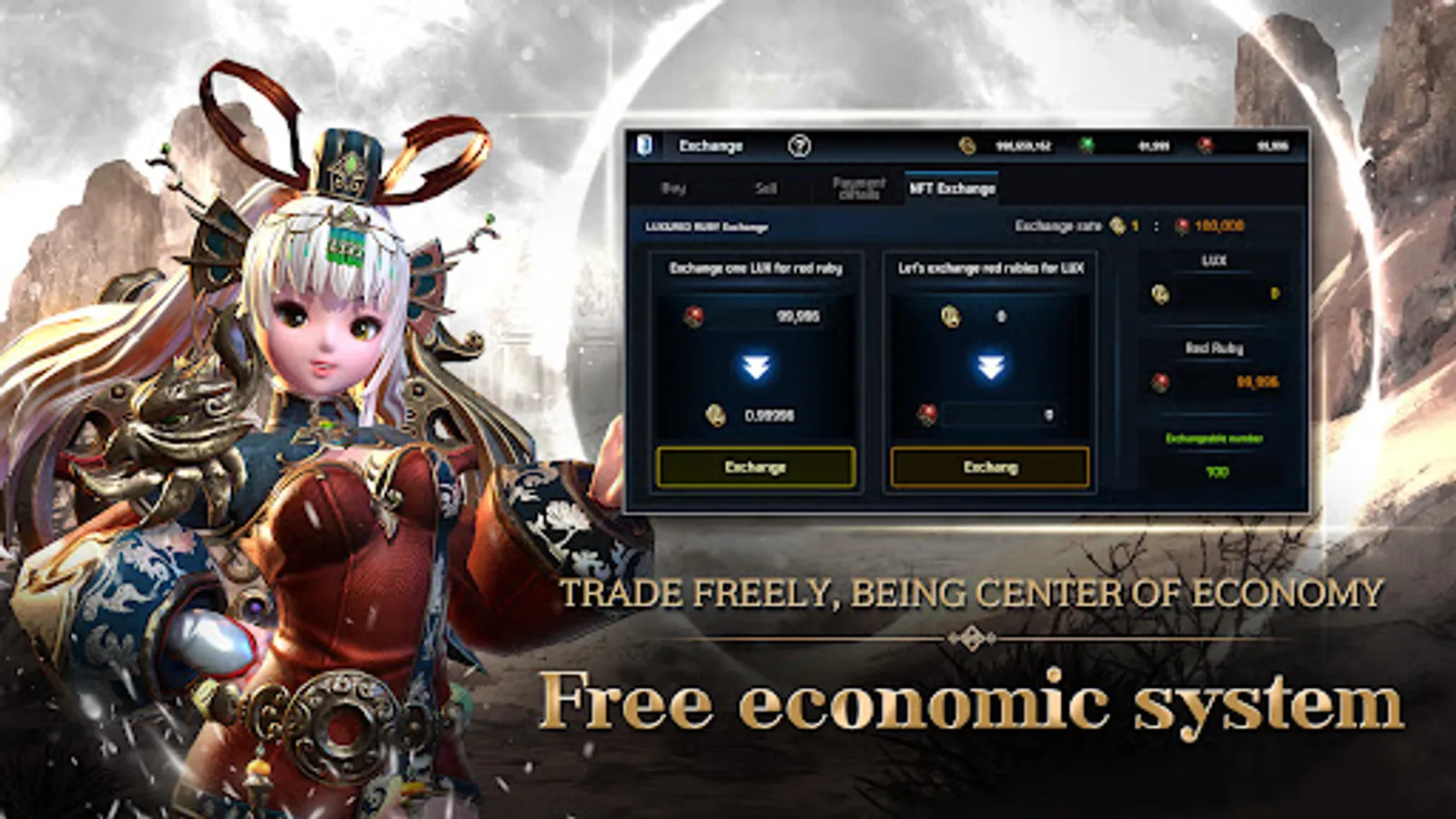Experience a free economic system by trading various items in Four Gods with RedGem and exchanging them to LUX TOKEN.