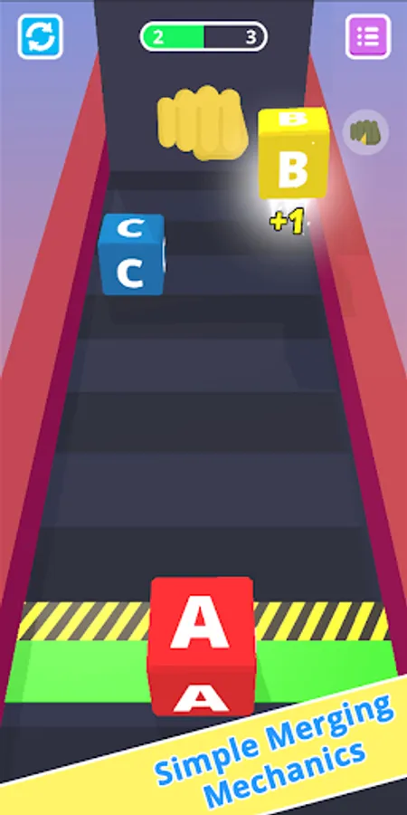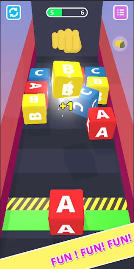 Adjust your trajectory and shoot cubes into the board. Merge cubes of the same alphabetical order together to upgrade them into a single higher alphabetical order cube