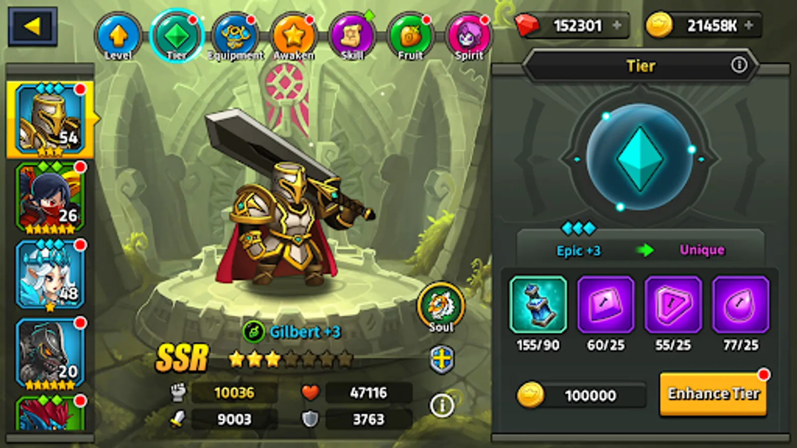 Make your Heroes stronger by Evolution, Awakening, Enhancing Skills and Equipment. Take advantage of Goblins and Griffin, and even ride on an Airship to explore Ruins. The fun will never end as you become stronger.