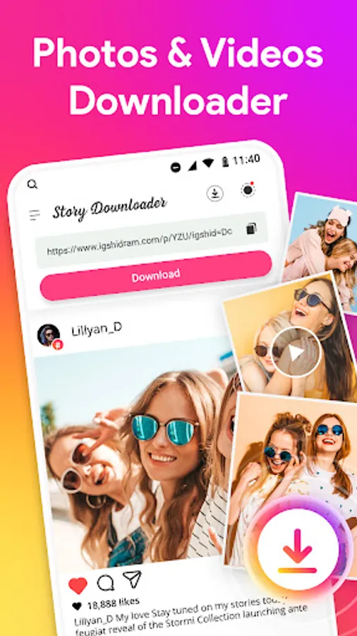 This video Downloader & instant Downloader is free application and easily repost Igsaver videos & photos with few clicks. IG Photo & videos downloader is a super-fast video downloader for social media. just copy Insta video URL link and past it in the search bar and download video, and enjoy this video downloader features free of cost.