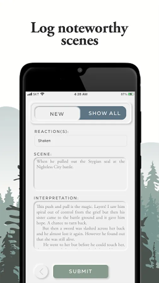 Visualizer: This helps you to track your engagement over the course of a story, by logging your emotional reactions to whatever scenes you deem worthy of noting.