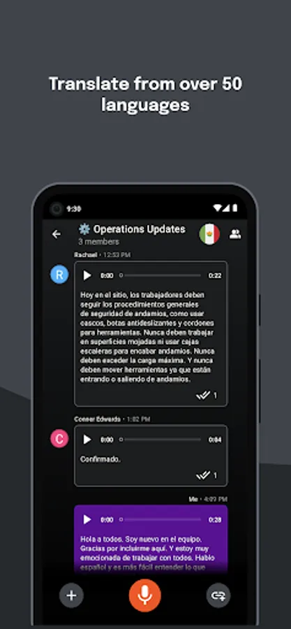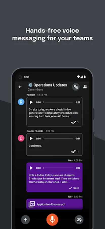Communicate effortlessly with your voice. Record and share transcribed and translated voice messages in seconds. Create teams and invite others with simple sharing.