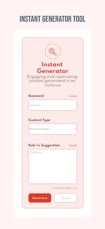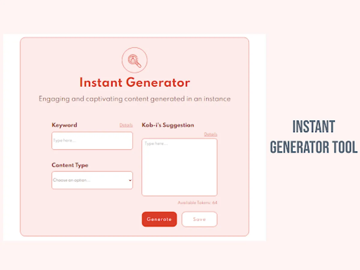 Looking for a great headline instead? Kob-i helps with that too. Using our instant generator tool, businesses can simply share a keyword and some context, and Kob-i will help them generate one-liners that can be used as headlines, captions, and taglines.