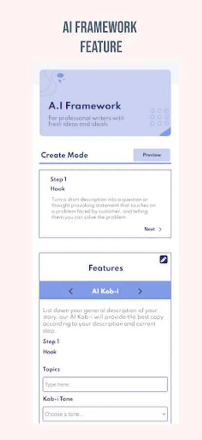 Need advanced writing assistance? The AI framework feature is useful and informative for intermediate and expert writers in need of content inspiration to learn from or who are looking for structured writing.