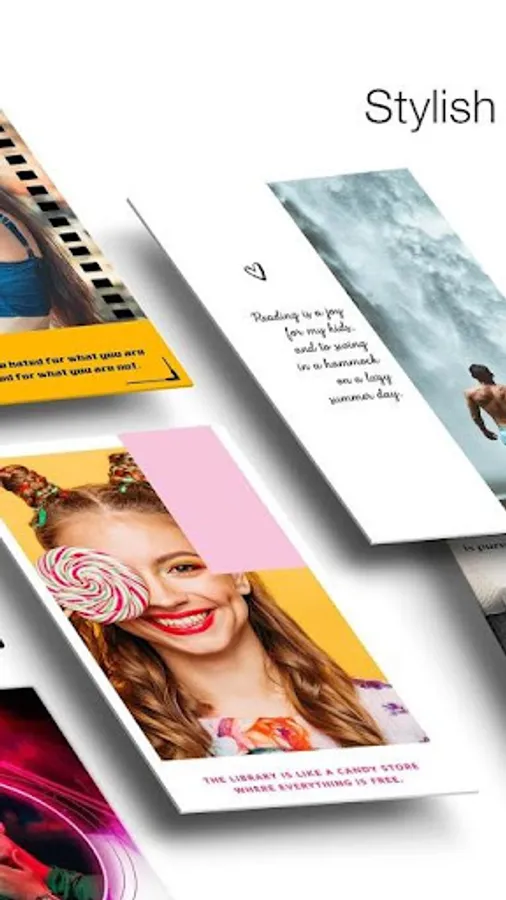Create your story by choosing from 200+ templates in our story editor. Use our advanced text tools with new fonts. Get creative with background colours, textures, stickers and more. Share to Instagram, Snapchat, WhatsApp, Facebook, Pinterest and more.