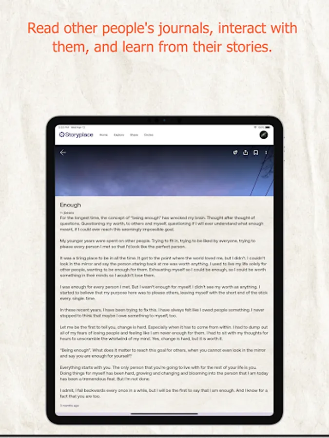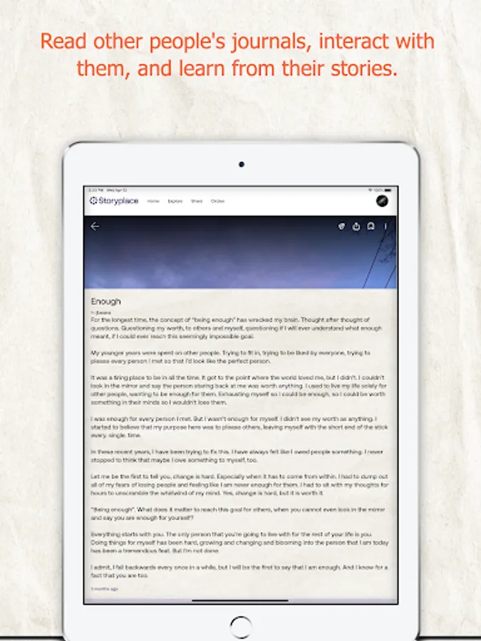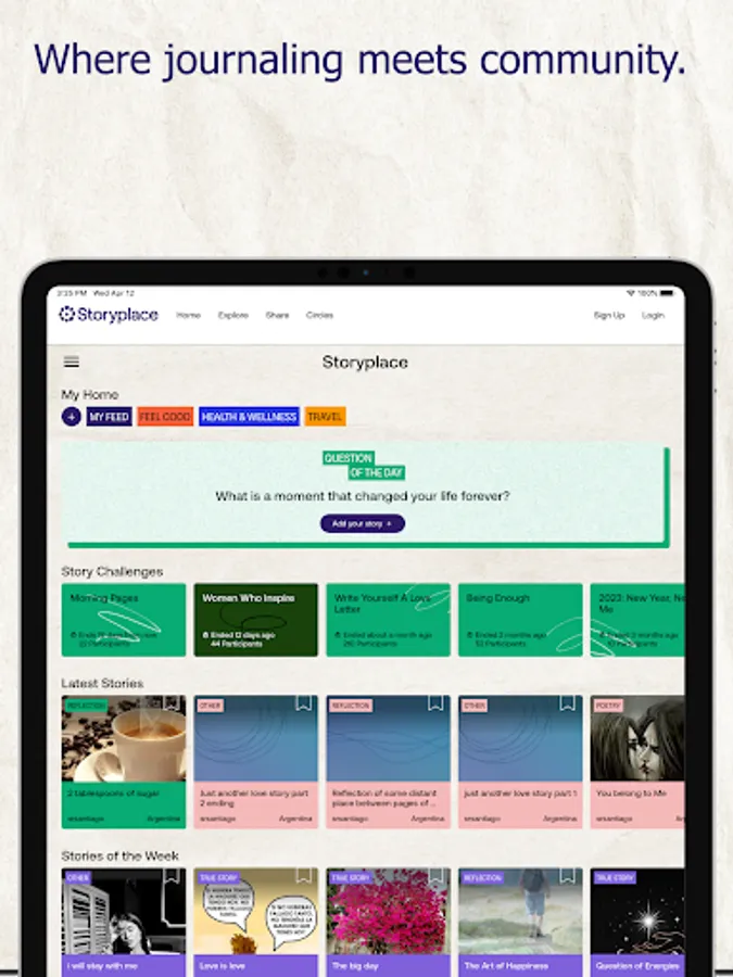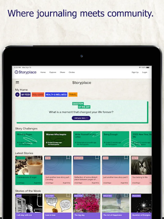 Storyplace is a social journaling app that offers a safe space for you to express yourself while connecting with a community of people around the world.