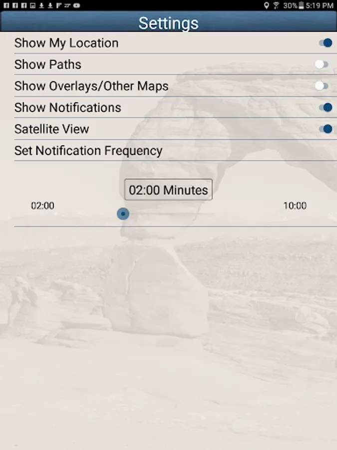 Content & Features Accessible Offline: Notifications with audio "teasers", map icons, trail paths, text descriptions, images, topo and other map overlays, polygons, and user location services.