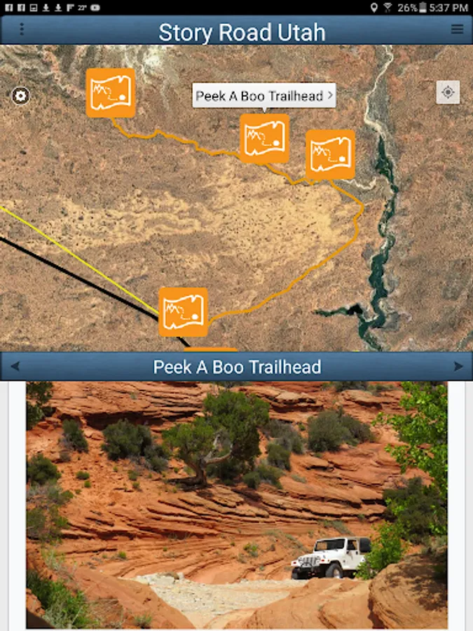 You can be completely spontaneous because our geo-alerts lets you know what story/destinations are nearby. And talk about adventure, the Story Road Utah app even lets you download off-road maps of trails and paths so you can create an overlay on your mobile device and track your travels via GPS – to make sure you're staying on your chosen path. Explore the wilderness using map navigation menus or map icons outside of cell range and still receive geo-alerts for points of interest along your way.