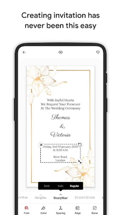 Easy Template Customization: You can customize templates by tapping on them. Add images and set border thickness, Change font styles, alignments etc easily.
