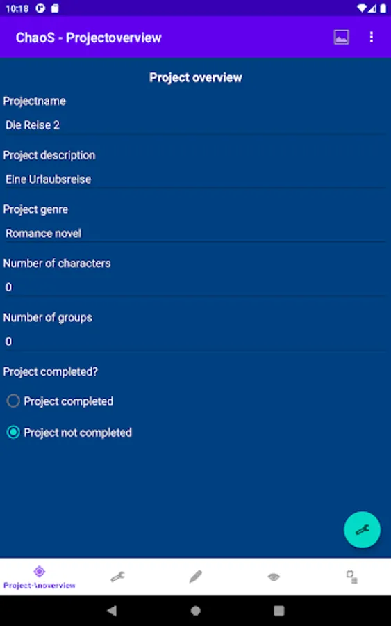 With the help of the ChaoS Storytelling app you can better plan your writing projects. Create your projects in the app, add characters, groups and notes to them and always have a good overview of your projects.