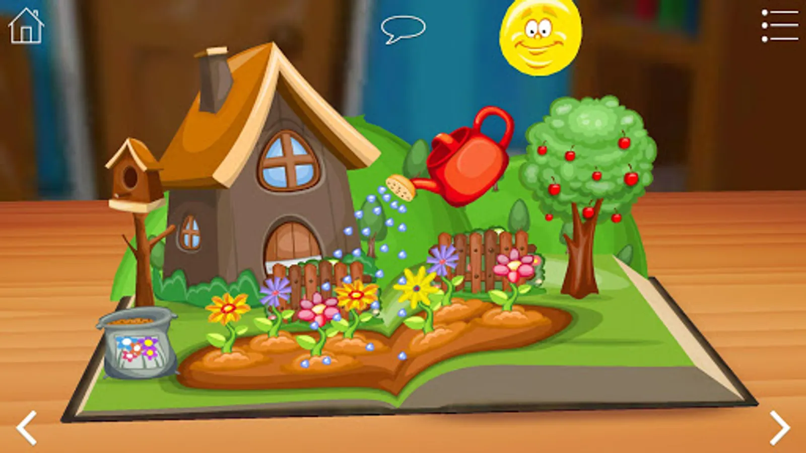 • 8 interactive 3D pop-up scenes with simple tasks and games to perform