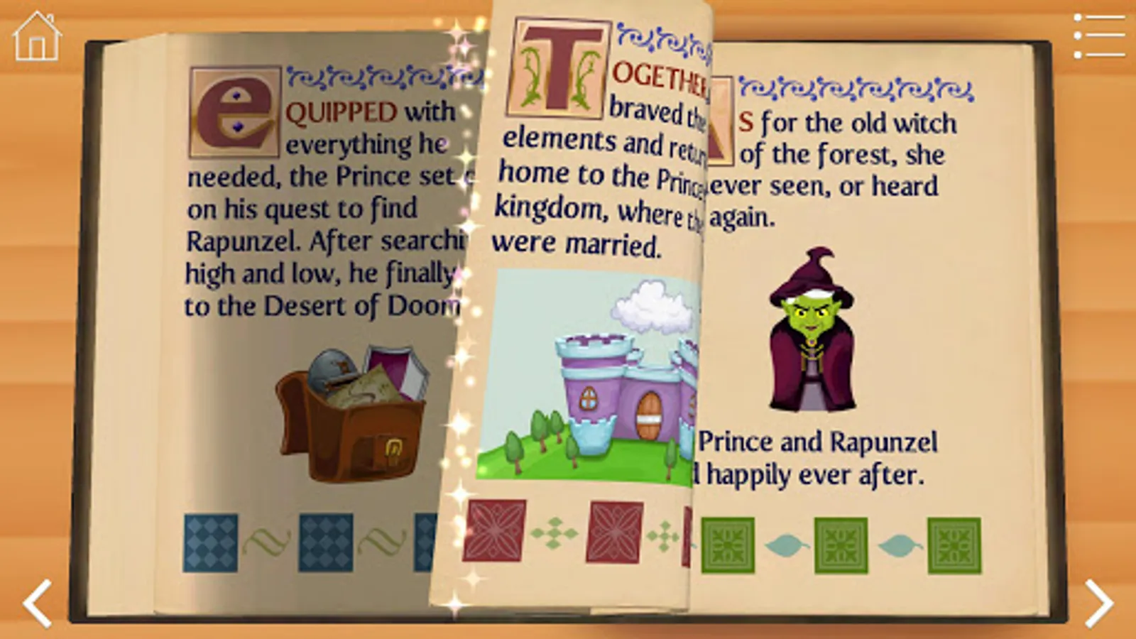 When you finish the story, enjoy a collection of Rapunzel jigsaw puzzles and then create your very own stories in the Rapunzel 3D sticker book.