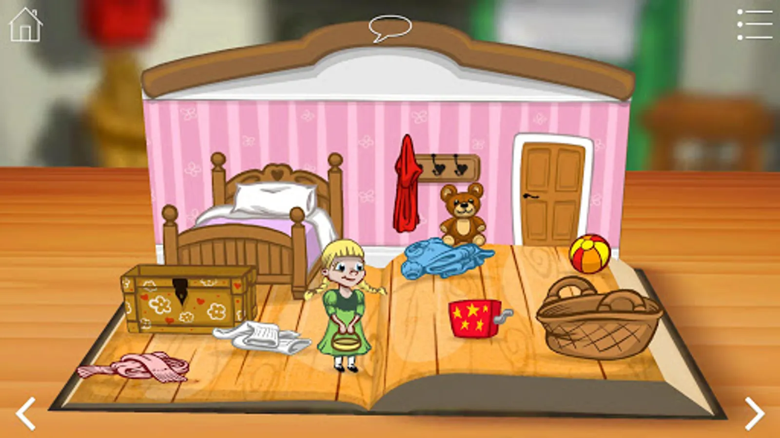 • 8 interactive 3D pop-up scenes with simple tasks and games to perform