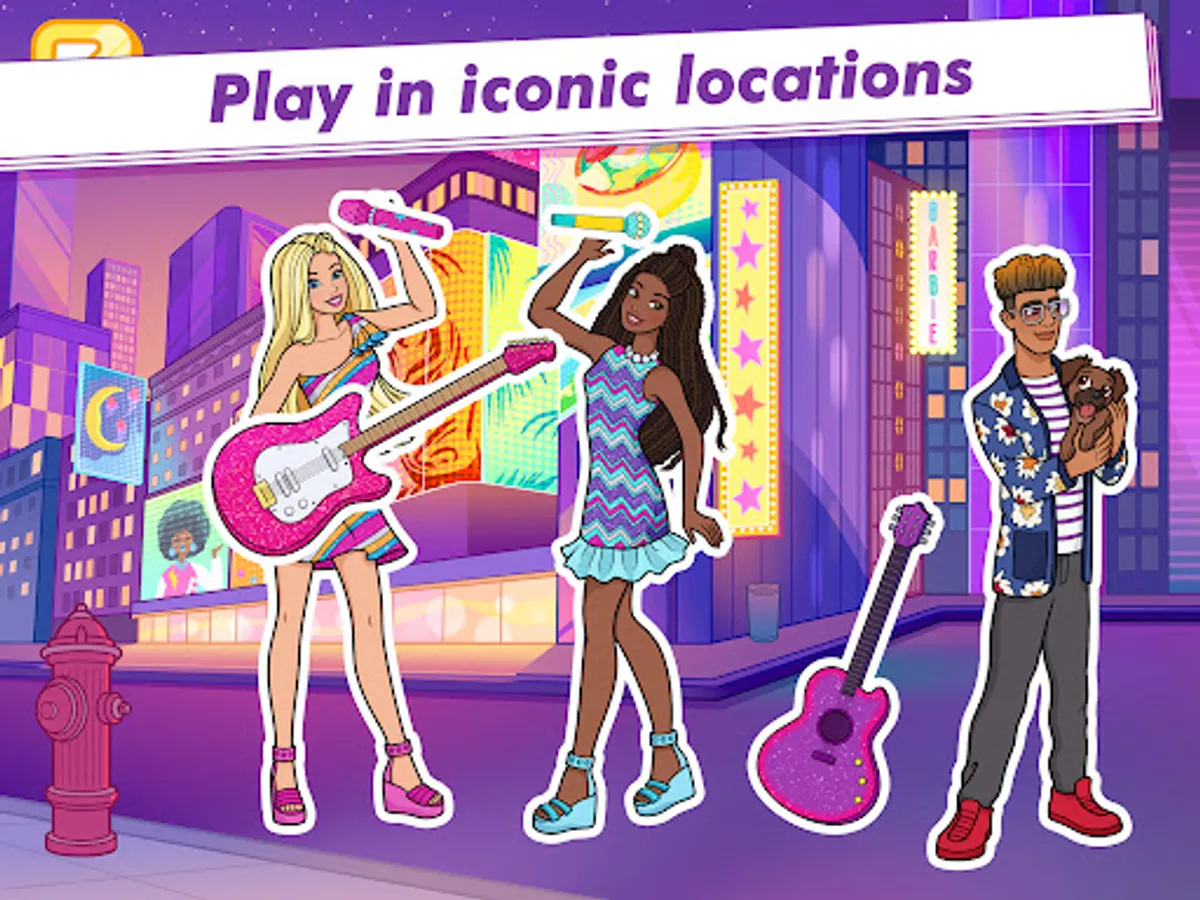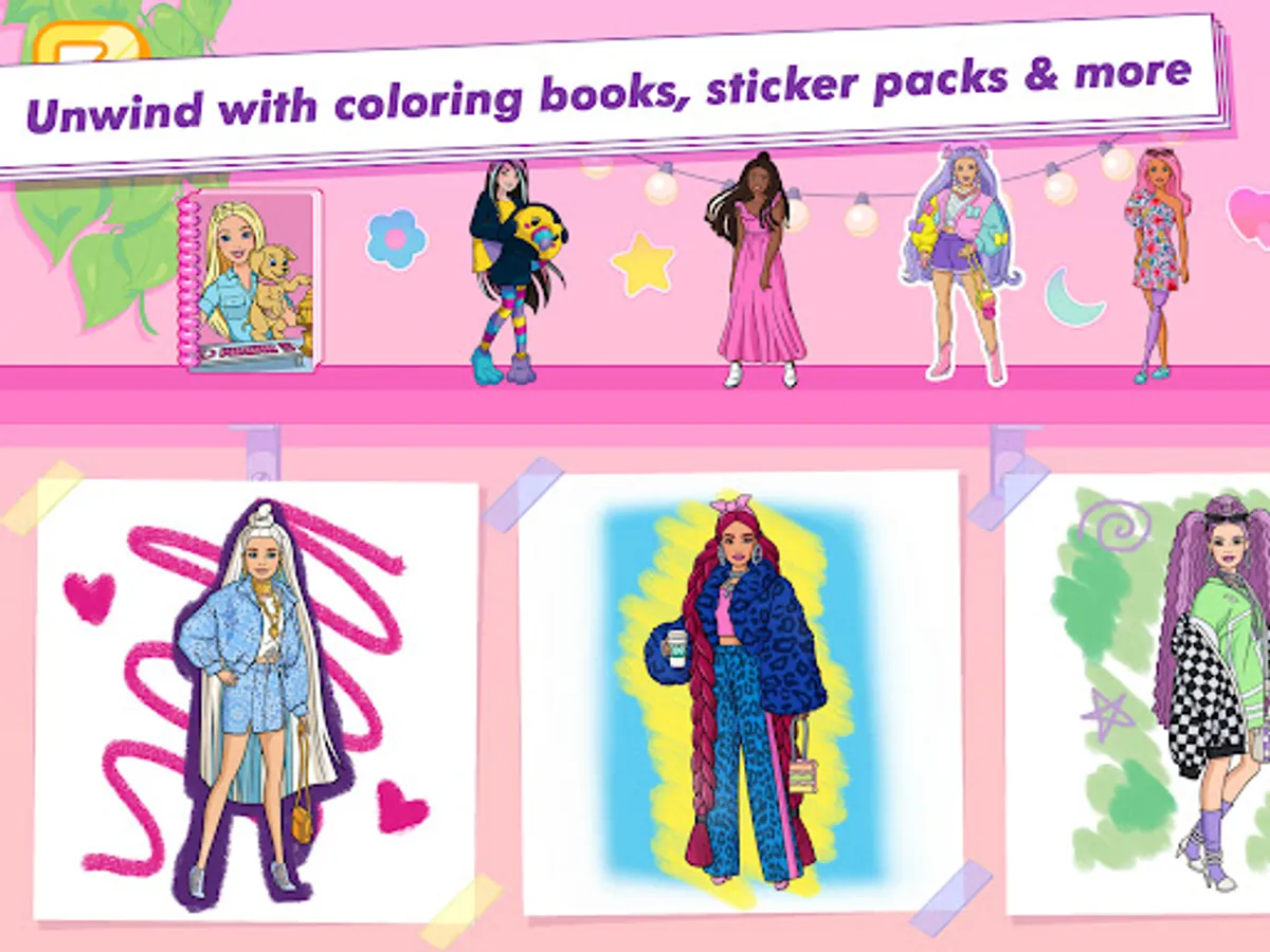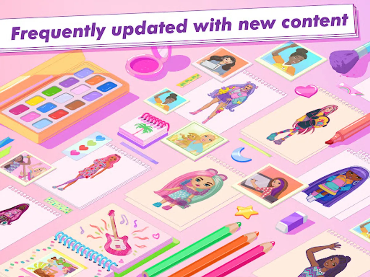 Join “Brooklyn” and “Malibu” on a colorful adventure in painting, sketching, designing and more! Explore an ever expanding bedroom of coloring books, tools, designs, locations and items. Bring Barbie’s memories to life with creative design challenges. Embark on a creative journey by customizing items and characters from your favorite Barbie movies and series, then save your designs as stickers and play with them in 2D locations. Earn unique rewards for completing design stories, and use them to decorate your personal studio. Download any drawing as an image to your device, so you can show it off to your friends and family.