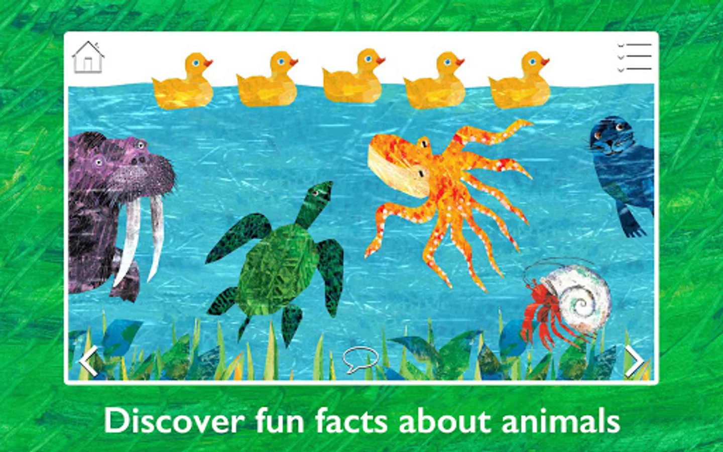 Please note this app features the beautiful artwork of Eric Carle in the form of educational games, activities and fun facts but does not feature the original story of The Very Hungry Caterpillar or other Eric Carle kids books.