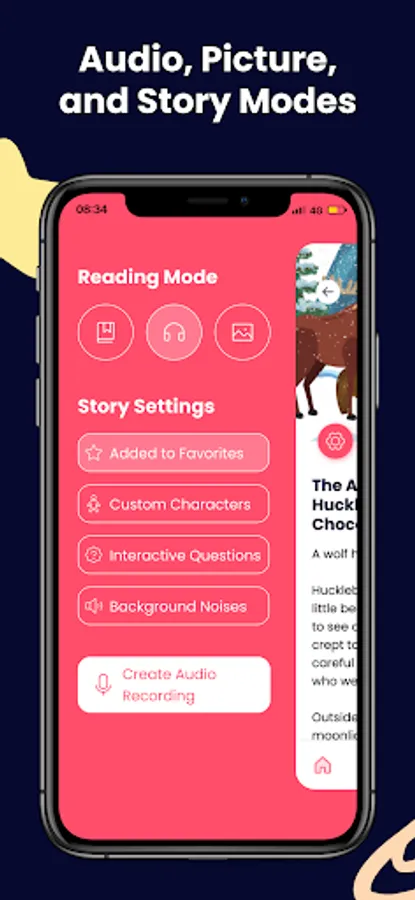 * Audiobook, Picture Book, and Storytelling reading modes.