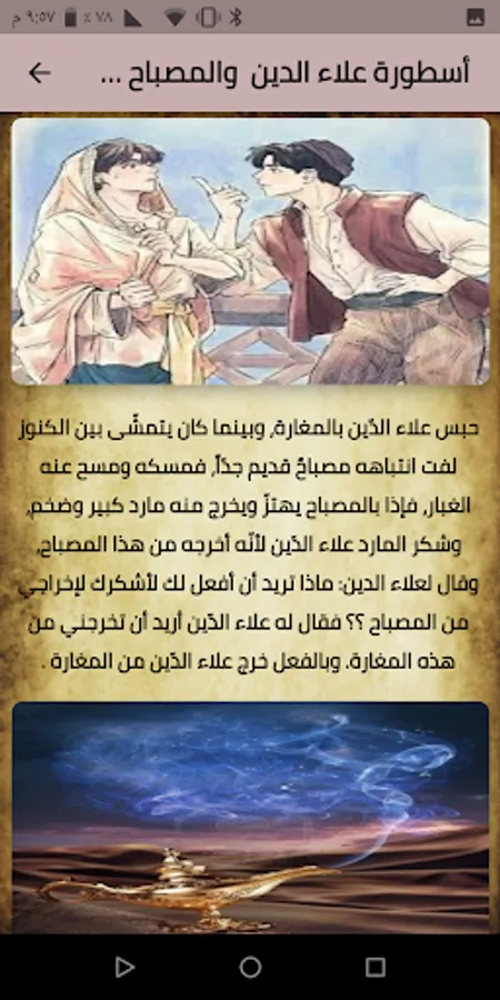 In this application, we collected the best stories over time that are fun and beautiful, and among the beautiful stories that have been mentioned, the story of the princess, the hunter, the sharer, Hassan, the story of Alice, the woman of the eldest, the rook, Aladdin, Ali Baba, the forty thieves, Sinbad, the monster of Nisnas, Kalila, Damani, Majnun, Laila, and finally the story of Juha and the donkey.