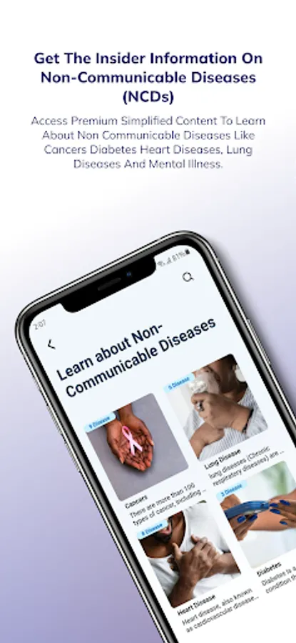 With the NCDs365 app, say goodbye to non-communicable diseases like cancer, heart diseases, lung diseases, and diabetes. Our easy-to-use and fun platform provides simplified information and preventive measures, empowering you with the knowledge to lead a healthy lifestyle.