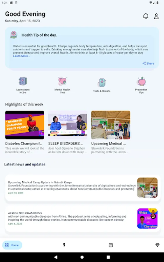 The NCDs365 app is the ultimate guide for individuals who want to live a healthier and happier life. With our platform you get practical tips to living a healthier lifestyle, learn about non communicable diseases, track your health vitals including your mental health status and connect to organizations and institutions providing care in the non-communicable diseases space. Say goodbye to non-communicable diseases like cancer, heart diseases, lung diseases, and diabetes.