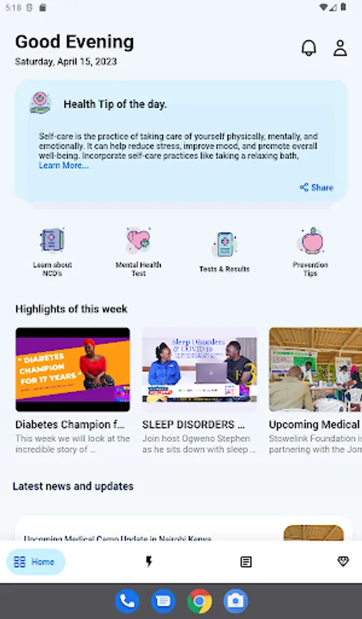 Stay connected with relevant support groups and care institutions in our free directory, and stay updated on medical camps, new resources, and toolkits for learning about NCDs. Plus, take control of your mental health with our periodic mental health tests and track your progress.